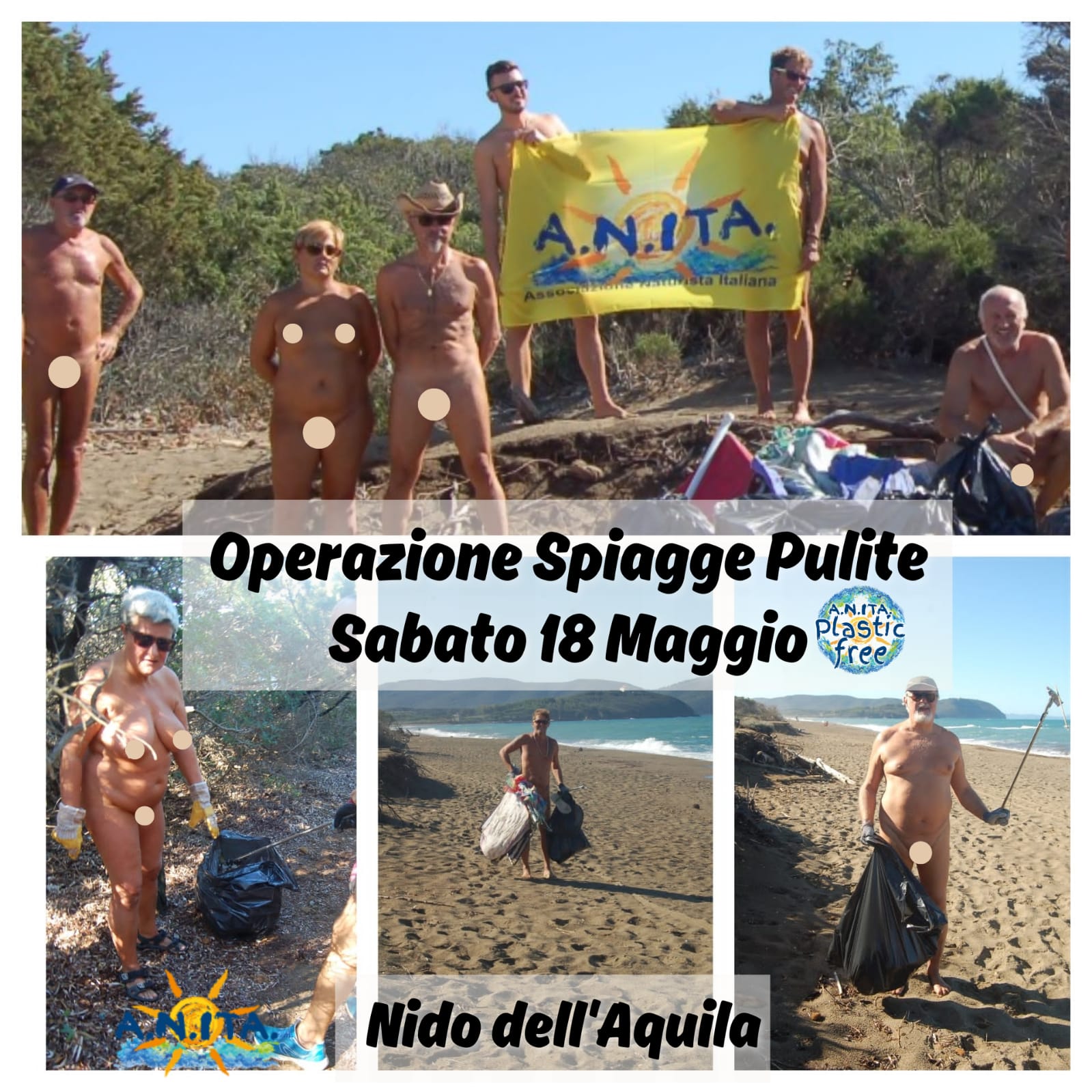 Naturismo e impegno civile e ambientale vanno a braccetto. Sabato 18 maggio 2024, al mattino, dalle 10,00 saremo in spiaggia al Nido dell'aquila, per la pulizia della spiaggia di inizio stagione vestiti di soli guanti (ognuno si porterà i propri da casa) e scarpe chiuse. Sarà un’azione ecologica col patrocinio del comune di San Vincenzo. Anche i bambini sono i benvenuti e quindi questo evento non avrà un target particolare ma l’invito è aperto a giovani, famiglie e adulti. Potrebbe essere davvero l’occasione per fare avvicinare persone nuove al naturismo.